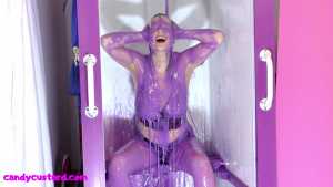 Gorgeous Lottii is back again for a gunging that is thick, lilac and infinite! in a tight little black dress, lacy lingerie and bare feet, we have a chat while setting up for infinity gunge mode and then celebrate being generally back and making gunge videos with not one, not two, but three super long gungings, with Lottii gradually stripping throughout, ending up naked, slippery, gunged and jiggling her amazing slimy boobs around. Stunning! Oh and ps, the pumpkin doesn't have a starring role, I grew it myself and just showing it off, with Lottii proving she can model anything from clothing to gunge to vegetables. A true superstar!