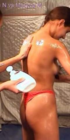 MessyLady_v2 got pushed into a wrestling ring filled with whipped cream by Chuck M